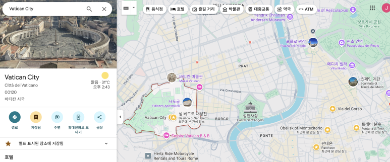 지도에서 보시면 아시겠지만, 바티칸 시티는 시내에서 떨어져 있어요.