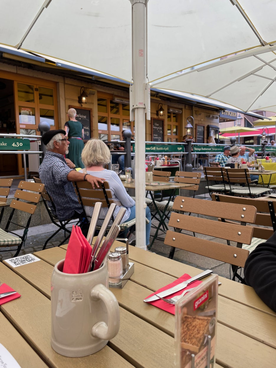 레스토랑 앞에 테이블들이 있어, 프레시한 공기를 마시면서 슈니첼, 소시지를 드실 수 있구요!