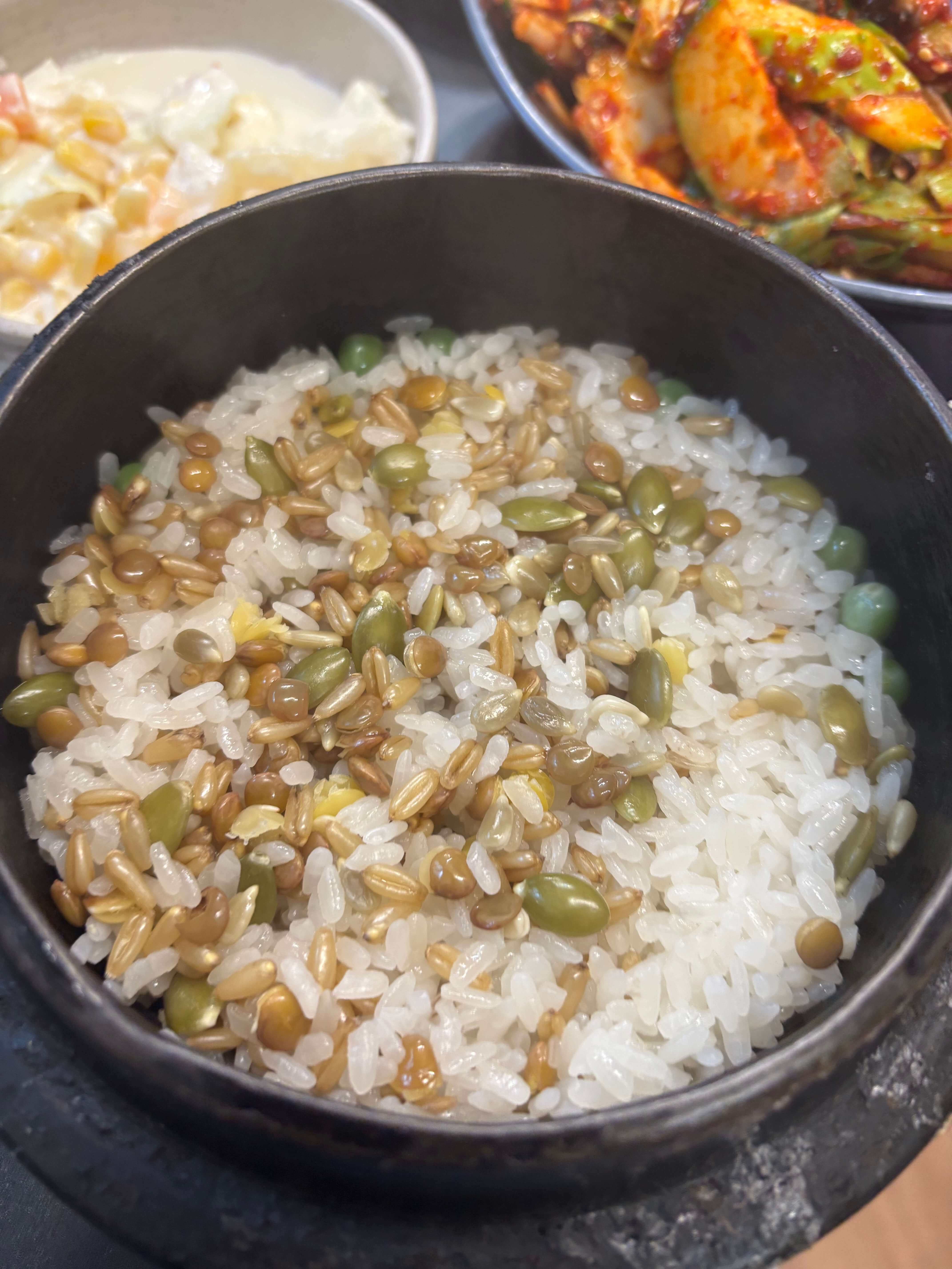 가마솥밥은 미니 가마솥으로 제공되는 게 특징이라 밥알 결이 살아 있고,
